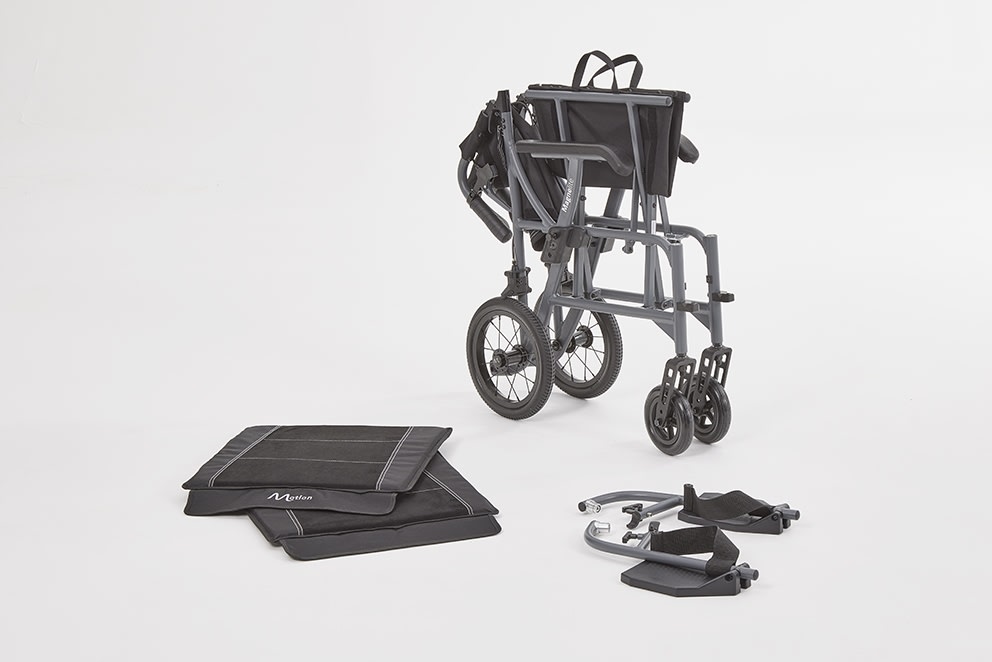 Other features include flip-up armrests for easy side transfer, a storage bag on the rear of the backrest and lift handles for easy transportation.